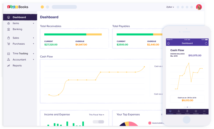 You don't have to wait until the end of the month to generate business reports. See the details of your income and expenditure like your total receivables, sales, top expenses and more at a glance.